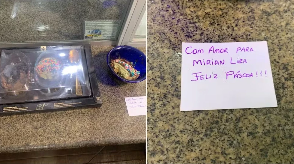 Na noite do mesmo dia, o ovo foi enviado por um motoboy, como se fosse um presente, para a casa de Mirian Mirian Lira, uma das vítimas. Havia um bilhete na encomenda: “Com amor, para Mirian Lira. Feliz Páscoa”.